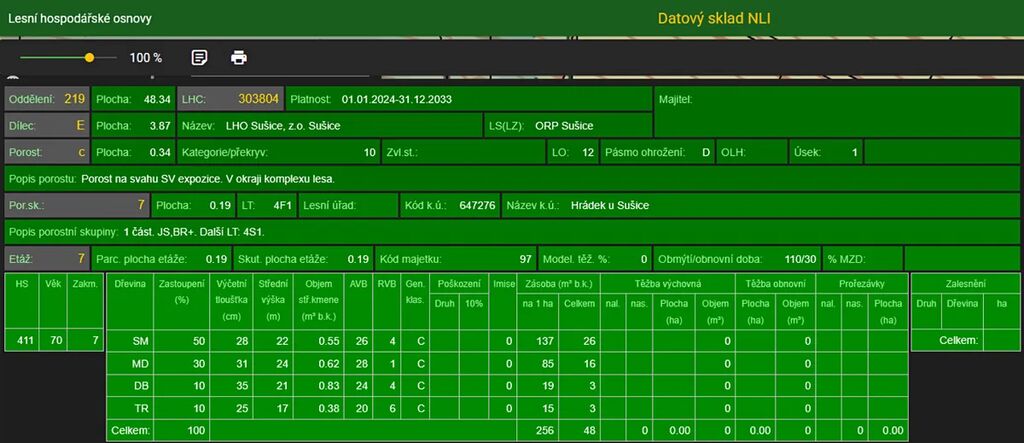 Stáří lesa a LHO viz. foto, zásoba dřeva 51 kubíků.