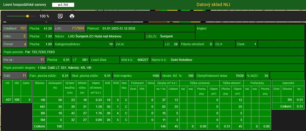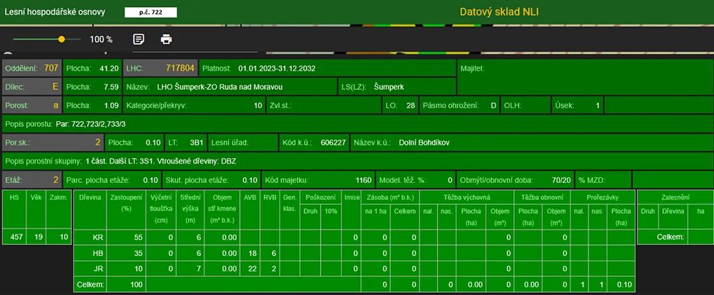Stáří lesa a LHO viz. foto.