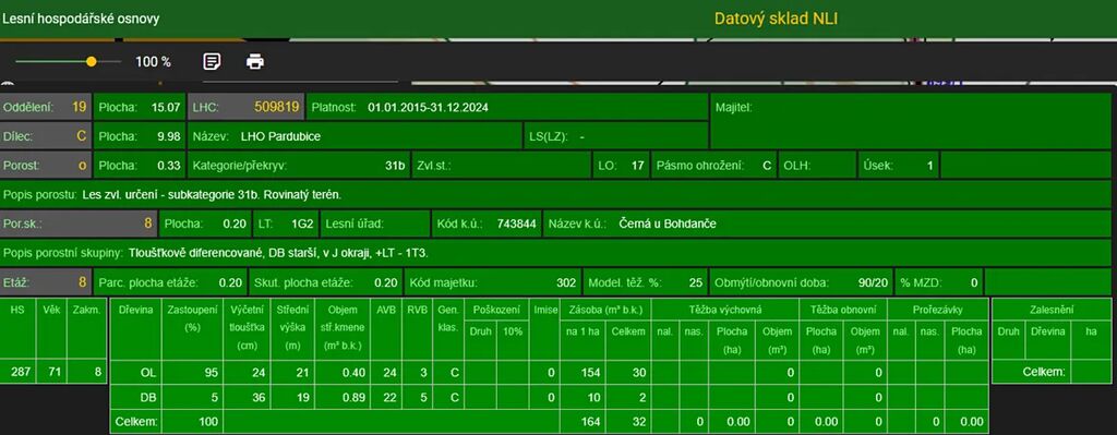 Stáří lesa a LHO viz. foto.