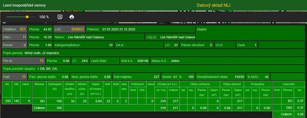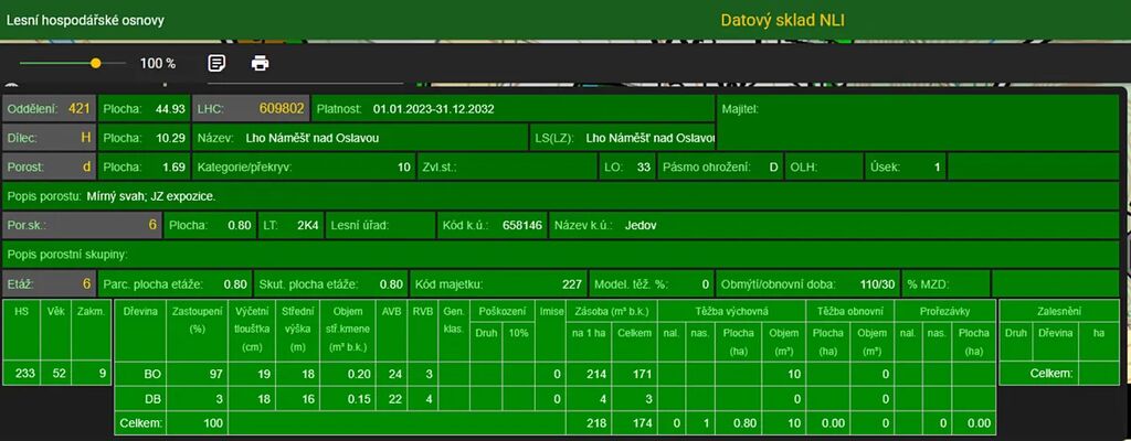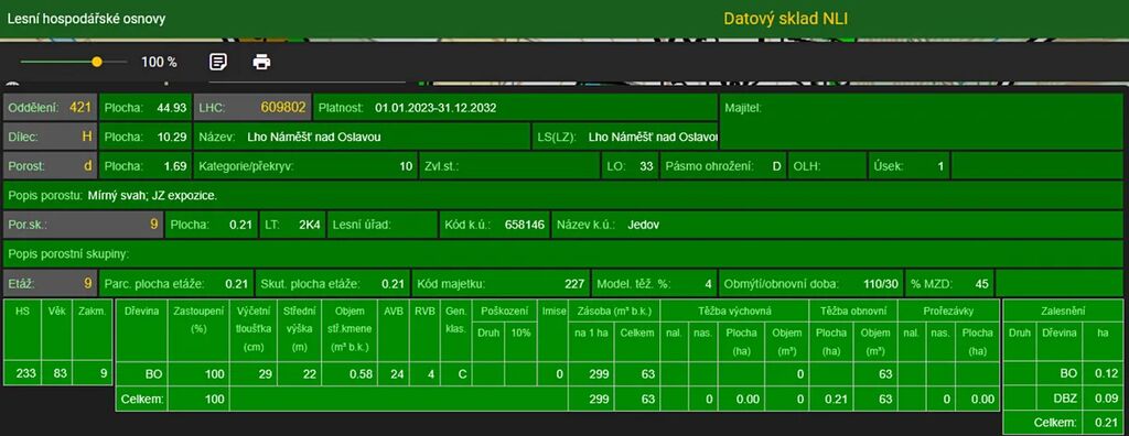 Stáří lesa a LHO viz. foto.