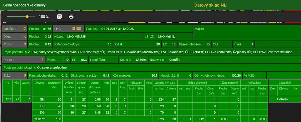 Stáří lesa a LHO viz. foto.