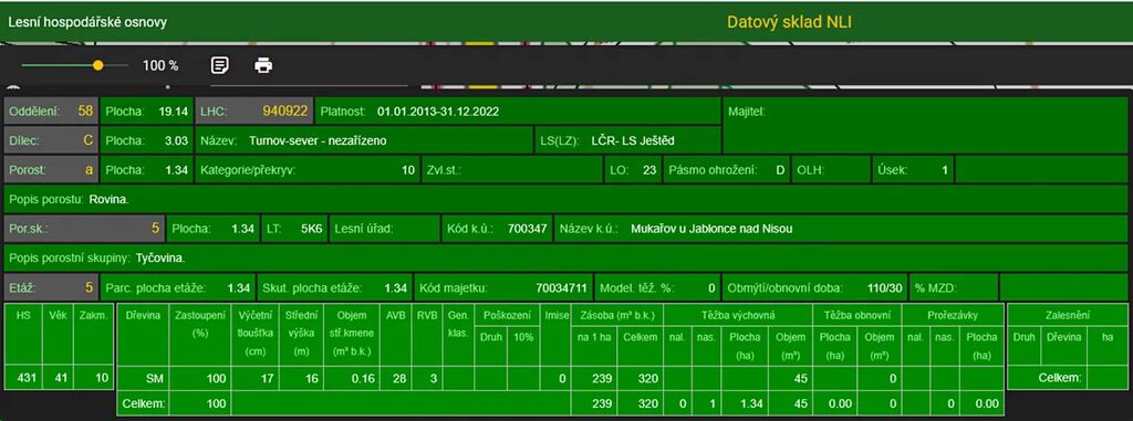 Stáří lesa a LHO viz. foto.