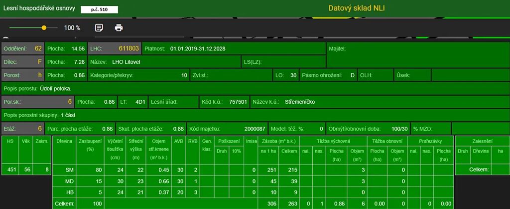 Jedná se o p.č. 510 vedená jako lesní pozemek o celkové výměře 6.196 m2.
