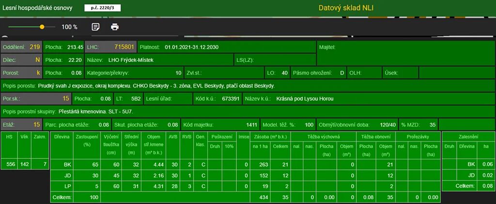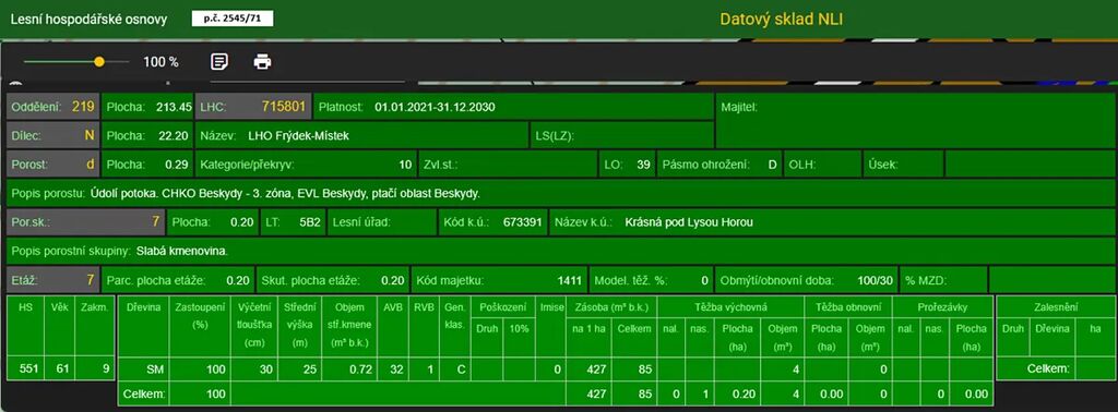 Jedná se o p.č. 2220/3 vedená jako lesní pozemek o celkové výměře 824 m2 a p.č. 2545/71 vedená jako lesní pozemek o celkové výměře 2 853 m2.