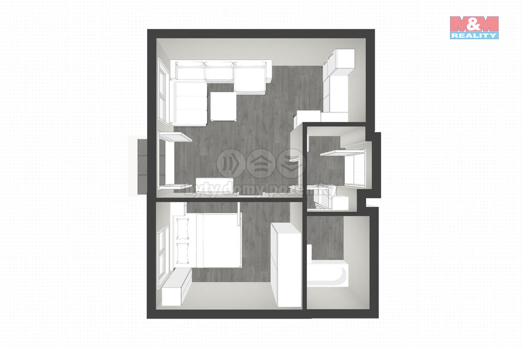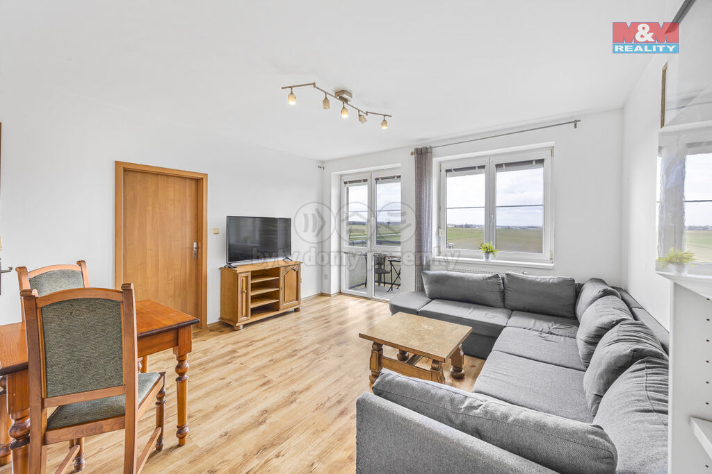 Disponuje obývacím pokojem s kuchyňským koutem, ložnicí, koupelnou s vanou, WC, předsíní a prostorným balkónem. V bytě jsou plastová okna se žaluziemi, šatní skříně, na podlahách vinylová podlaha a dlažba. Vytápění a ohřev teplé vody zajišťuje plynový kotel. V domě je společný skladovací prostor. K bytu náleží vyhrazené venkovní parkovací stání před domem. V blízkém okolí nemovitosti se nachází základní a mateřská škola a autobusová zastávka. V dochozí vzdálenosti Billa, Akva Zoo, trafika, Pepco, drogerie Teta. Velkou výhodou je okolní zeleň.