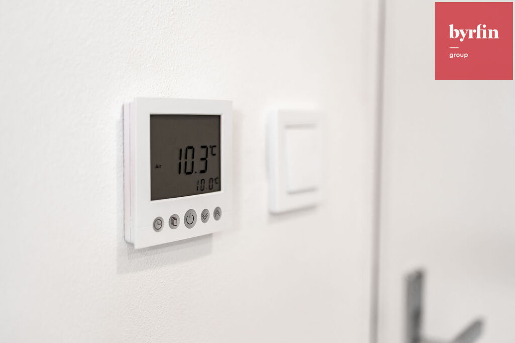 Byt má elektrické podlahové vytápění s termostaty v každé místnosti. Ohřev vody je zajištěn elektrickým bojlerem. Náklady na energie jsou příznivé z důvodu levné elektrické sazby.