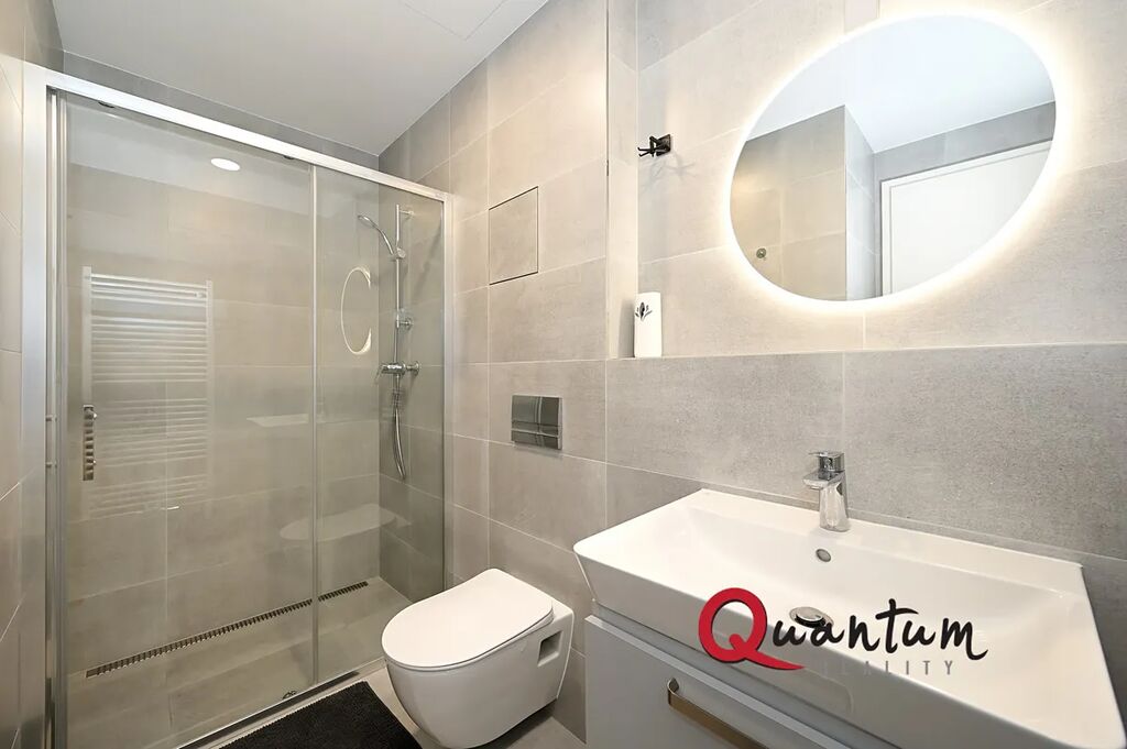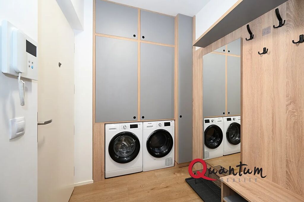 Byt je velmi prakticky řešený. Prostorná vstupní chodba o velikosti 5,4 m² je vybavena vestavěnými šatními skříněmi a nachází se zde také pračka se sušičkou. Koupelna o velikosti 4,6 m² je zařízena sprchovým koutem, umyvadlem, zrcadlem a toaletou. Obývací pokoj s kuchyňským koutem o rozloze 22,2 m² je světlý a vzdušný. Kuchyň je plně vybavena lednicí s mrazákem, myčkou, sklokeramickou varnou deskou, digestoří a dostatkem úložného prostoru. Ložnice o velikosti 15 m² je zařízena manželskou postelí, nočními stolky a vestavěnou šatní skříní. Díky modernímu vybavení a chytrým vestavěným prvkům byt nabízí maximální komfort a dostatek úložného prostoru.