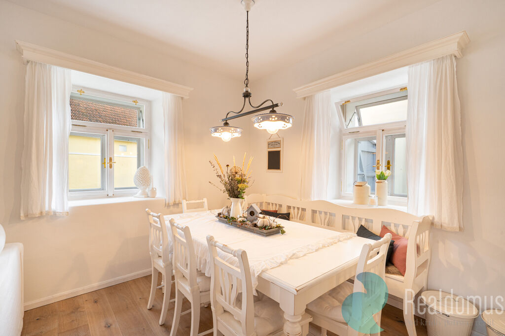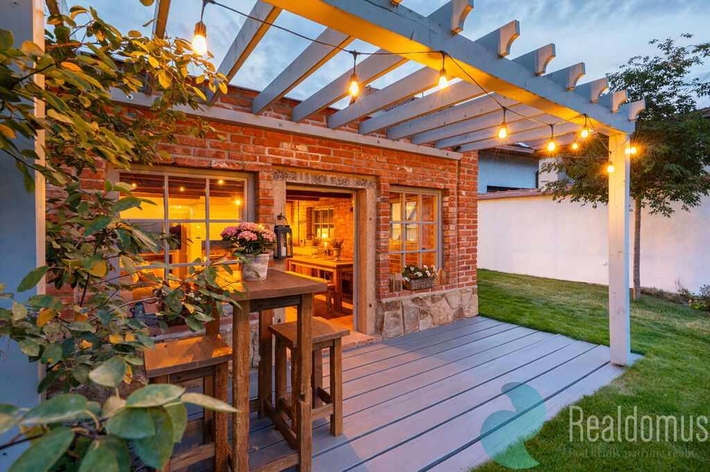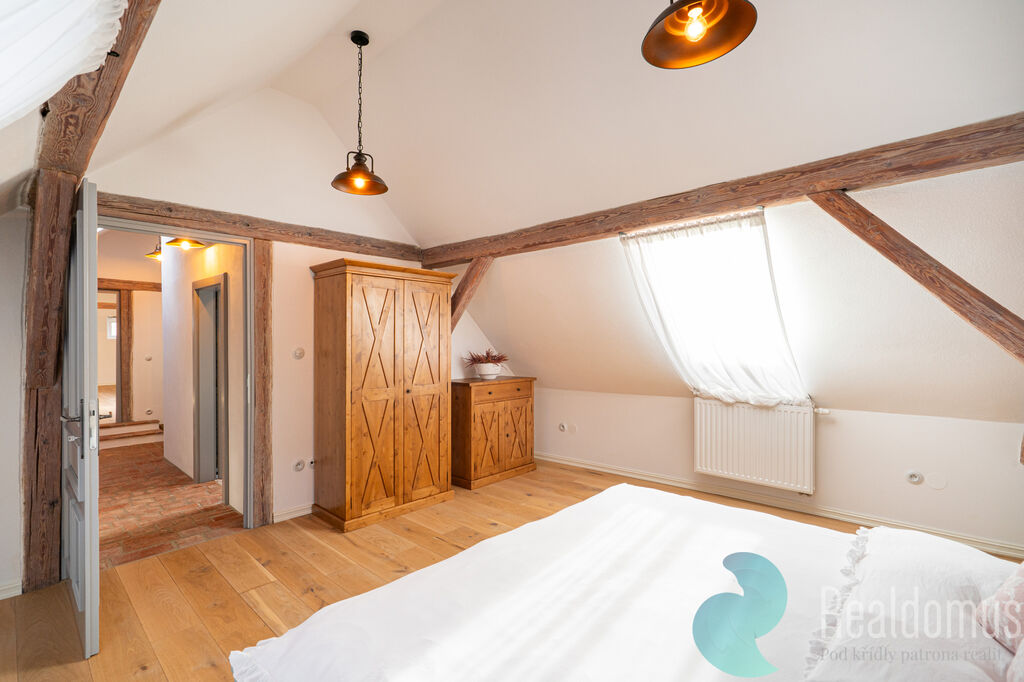Za zdmi uzavřeného dvora objevíte svět, kde čas plyne pomaleji. V domě se nacházejí tři ložnice, dvě koupelny a prostorná obytná kuchyně, jejíž atmosféru dotvářejí kamna s pecí. Majitelé provedli velmi citlivou rekonstrukci, jejíž podstatou bylo použití tradičních prvků, jako jsou trasvápenné omítky, špaletová okna, dubové podlahy, porcelánové zásuvky a vypínače, ručně vyráběná italská svítidla či retro-sanita, díky nimž si dům uchoval svůj původní historický charakter. Každý detail působí jako malý umělecký šperk – od původního starého dřeva po kvalitní dlažby. Dům je navíc podsklepený a technicky připravený i pro moderní technologie, včetně chytrého ovládání vytápění.