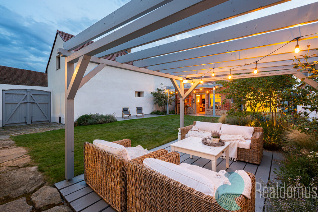 Kouzlo života se tu neodehrává jen uvnitř. Letní zahradní dům s krbem je ideální pro rodinná či přátelská setkání a velkoryse zrekonstruovaná stodola nabízí prostor pro větší akce či další využití podle vaší fantazie (svatby, oslavy). Stodolu je též možné díky přípravě rozvodů rozšířit o 2 až 3 apartmány. Usedlost se nachází v samém srdci vesnice, přesto poskytuje naprosté soukromí. Ať už hledáte klidné trvalé bydlení nebo rekreační útočiště, tady jej najdete.
