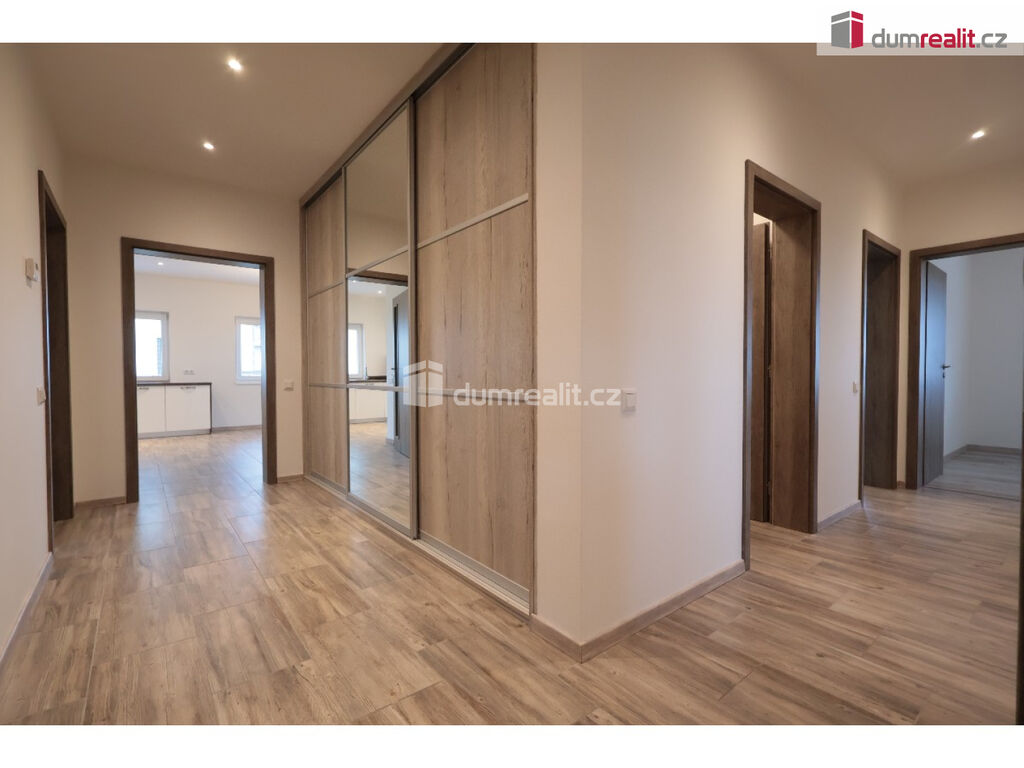 Dumrealit.cz Vám zprostředkuje exkluzivně pronájem nízkoenergetické, bezbariérové novostavby domu (2018 – top stav) s dispozicí 4+kk, 152,40 m² + 8 m² krytá terasa, v obci Sibřina, nedaleko městyse Říčany, 3 km od Prahy. Dům je volný od listipadu, prohlídky jsou již monžné, aktuálně se maluje a připravuje pro nového nájemce. Plocha pozemku je 1143 m², zastavěná plocha je 200 m², zahrada má 943 m². Dispozici domu 4+kk (152,40 m²) s garáží (20 m²) tvoří prostorný obývací pokoj (40,9 m²) s možností instalace krbových kamen, prakticky spojený s kuchyňským koutem, který je vybavený luxusní zakázkovou kuchyňskou linkou se spotřebiči (myčka 60, indukční deska, digestoř a vestavěná el. trouba a vestavěná mikrovlnka). Kuchyňský kout má praktickou komoru/špajz (1,93 m²). Z obývacího pokoje je vstup přes francouzské dveře na zastřešenou terasu (8 m²) a na zahradu (943 m²). Další místnost domu 4+kk (152,4 m²) tvoří: ložnice (15,76 m²), dětský pokoj (14,48 m²) a pokoj (13,88 m²), centrální koupelna (9,84 m²) s vanou, umyvadlem, toaletou, bidetem, sprchovým koutem a oknem. Dále jsou v domě: komora / technická místnost (4,43 m²), toaleta (2,40 m²), velká interiérová chodba (14,12 m²), zádveří (6,46 m²), samostatný sklad (8,20 m²), který má přístup ze zahrady a je zde umístěn plynový kotel, a velká garáž pro 1 auto (20 m²) se vstupem do domu. V celém domě je podlahové/teplovodní vytápění pomocí plynového kotle a klimatizace. Konstrukce domu je z materiálu Ytong. Na podlaze ve 2/3 domu je praktická dlažba, ostatní pak plovoucí podlahy. Vjezd do garáže je ovládán elektronicky. Tento dům je volný od listopadu, je v osobním vlastnictví, elektroměr a plynoměr se hlásí na nájemce. Zvíře se řeší individuálně. Na zahradě je 4 m3 nádoba na dešťovou vodu – zalévání. Internet pomocí místní WIFI, dům má vlastní alarm. Majitel garantuje stabilní dlouhodobý pronájem, aktuální nájemce se stěhuje na vlastní žádost po 3 letech. Dům pronajímáme od roku 2018. Velmi doporučuji všem, kteří hledají bungalov s velkou zahradou a garáží. Ev. číslo: 652493.