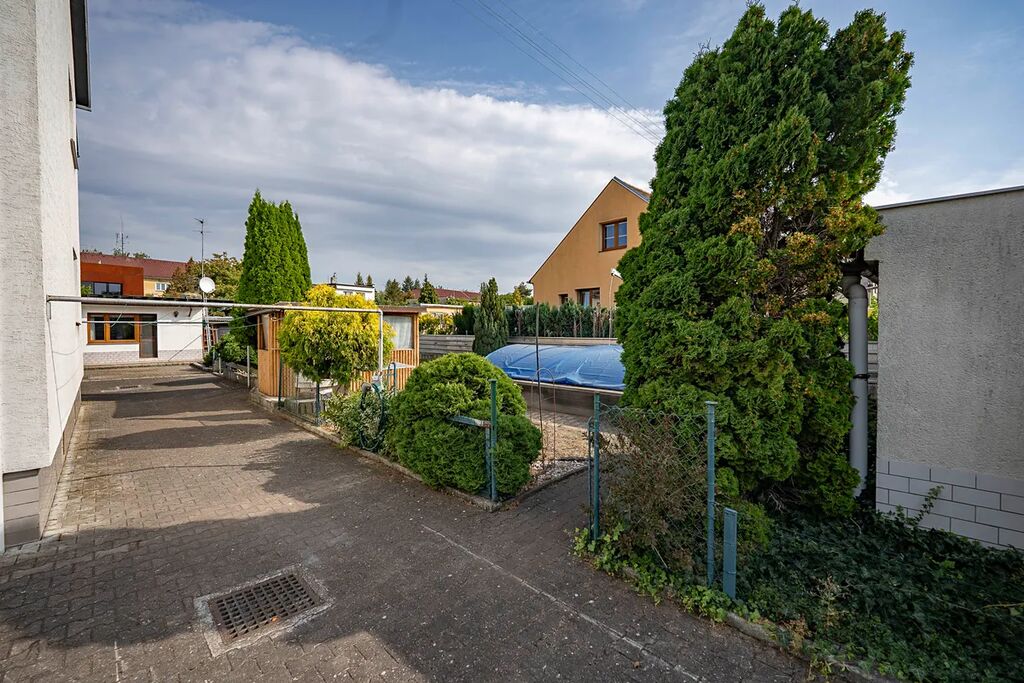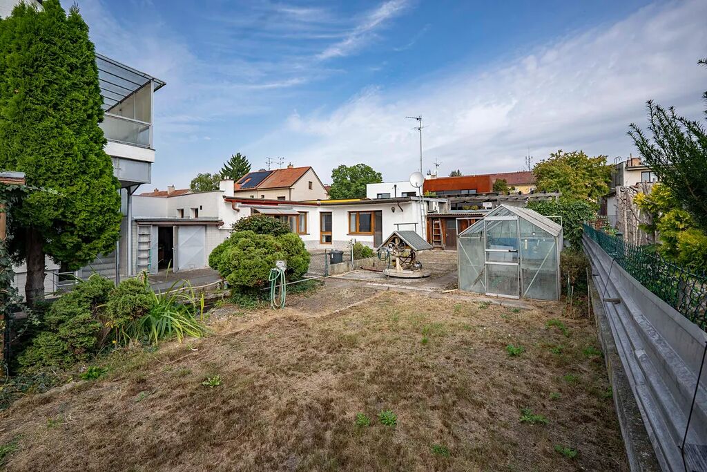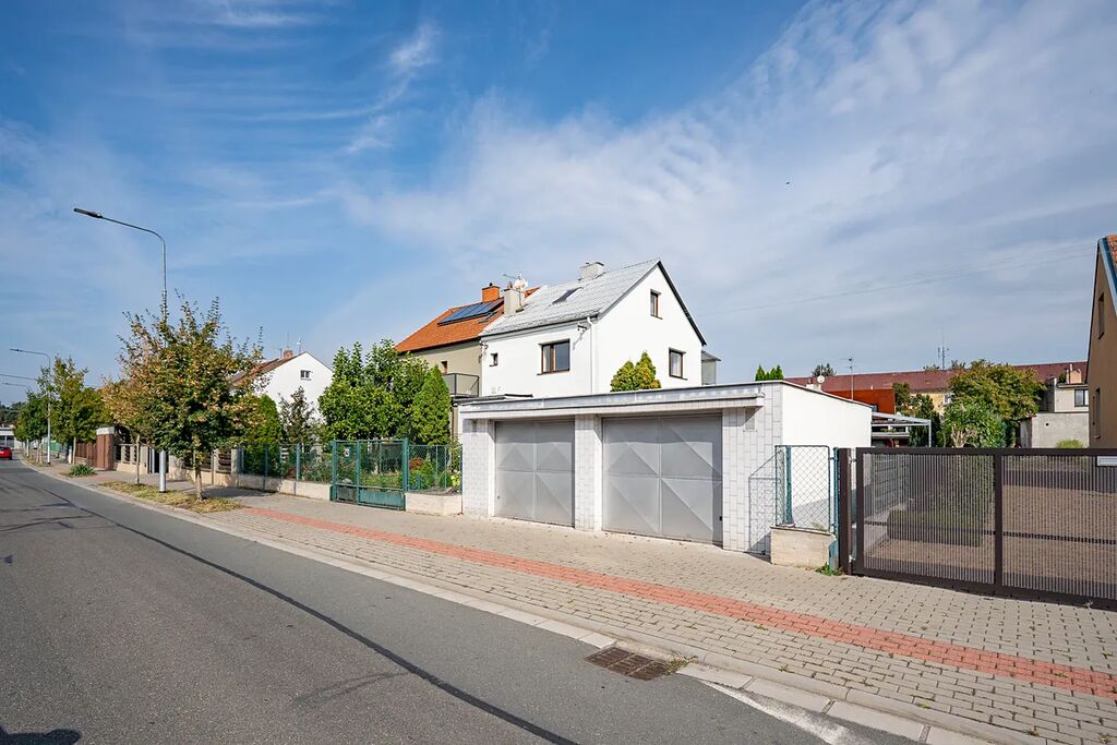 Dále k nemovitosti náleží dvě garáže přímo z ulice (39 m²), dílna, kolny, altánek a bazén s krytem. Zahrada poskytuje dostatek prostoru jak pro okrasnou, tak užitkovou část.
