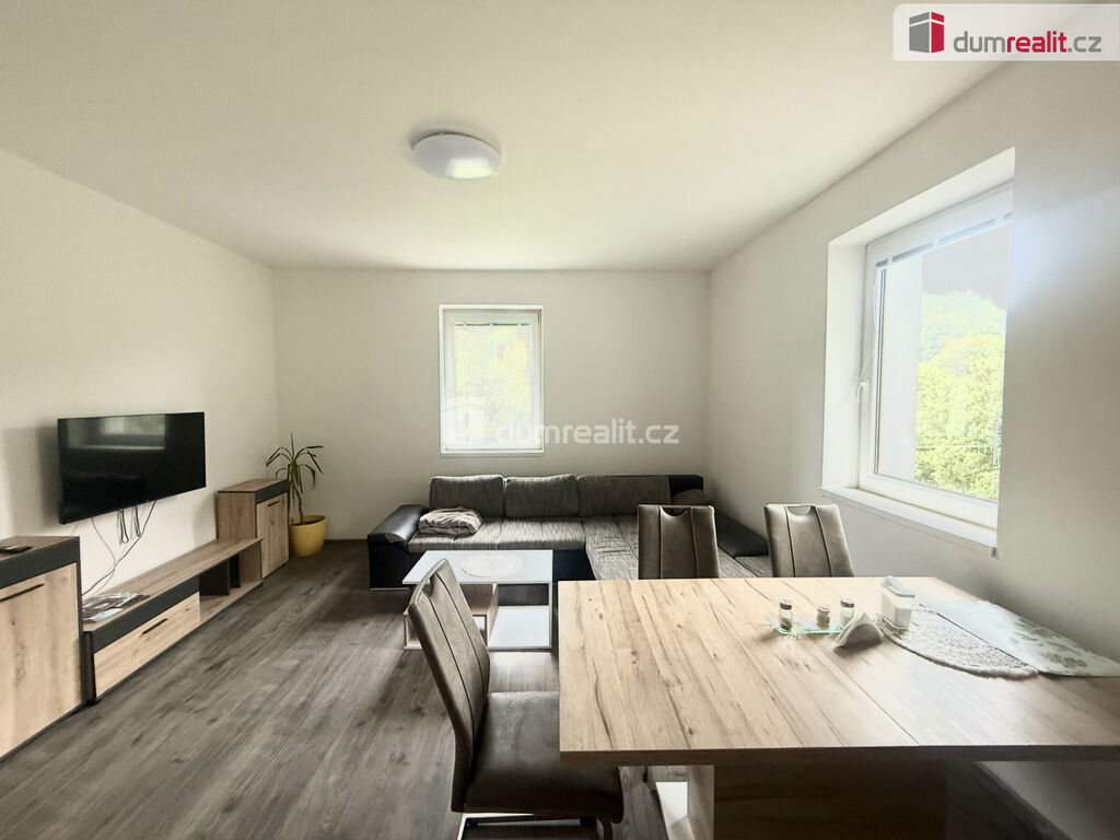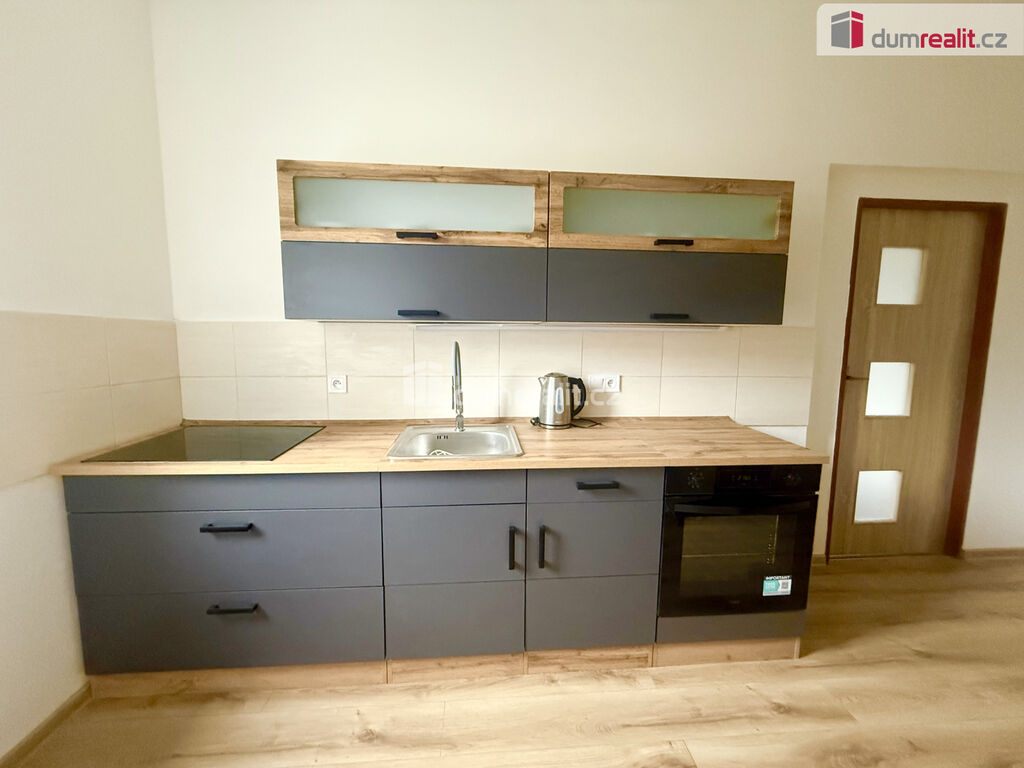 K pronájmu nabízíme nově zrekonstruovaný byt o dispozici 2+1 a velikosti 65 m², který se nachází v 1. patře zrekonstruovaného bytového domu se zahradou a vyhrazeným parkovacím stáním. Byt je plně vybaven – k dispozici jsou skříně, televize, jídelní stůl se židlemi, lednice, nádobí, postele i sedací souprava. Kuchyňská linka je velmi prostorná a součástí je sporák.