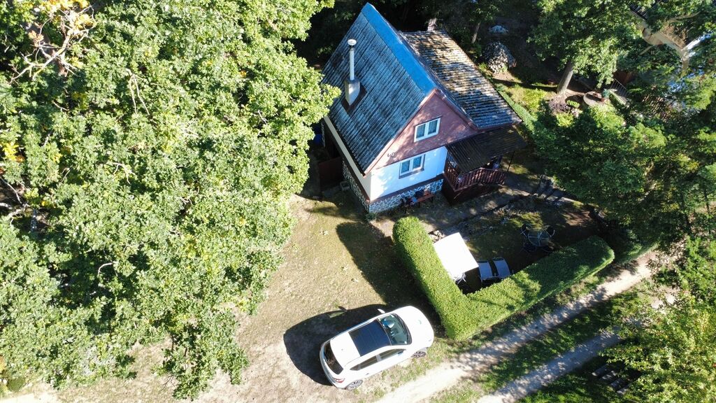 V přízemí chaty se nachází obývací pokoj, ložnice, kuchyňka, prosklená veranda a toaleta. Podkroví nabízí dva útulné pokoje s výhledem do zeleně. Celý objekt je podsklepený, nechybí prostorný sklep, garáž a dílna, takže kromě rodinného zázemí tu najdete i dostatek místa pro vše potřebné.