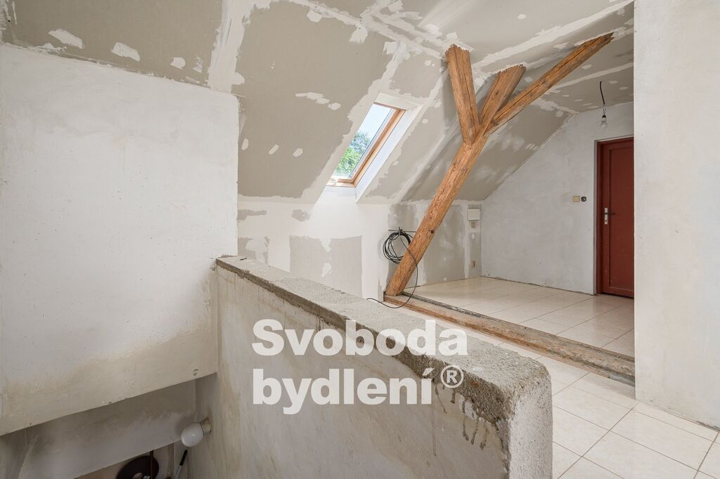 Další část této stavby, s dispozicí 3+kk, byla majitelem připravována také na bydlení, avšak práce v podkroví nebyly dokončeny. V přízemí se nachází předsíň a jedna obytná místnost (12m2), dále je zde samostatné WC a koupelna se sprchovým koutem. Po dřevěných schodech se dostáváme do 2. NP, kde jsou dvě samostatné místnosti (25, resp. 15m2), ve větší z nich je kuchyňská linka s dřezem. U schodů je společný otevřený prostor, který může sloužit jako obývací pokoj. Je zde i vstup na další půdu. V této části domu jsou dřevěná střešní okna, na podlaze je částečně dlažba, částečně litý beton (bez pochozí vrstvy) a částečně je dřevěná. Ve spodním podlaží je na zemi dlažba. Plocha této části budovy je v 1. NP cca 24m2 a ve 2. NP cca 54m2. Půda, přístupná ze 2. NP, má plochu cca 85m2.