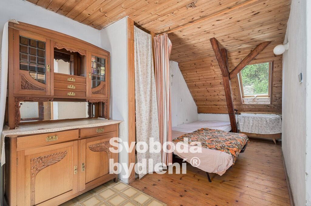 Obytná část budovy se skládá ze dvou samostatně přístupných částí. První část nabízí dispozici 2+kk bez sociálního zařízení a je v ní přímo pohádková obytná místnost (tzv. sednice – hlavní místnost) s plochou 38 m2 a krásnými kachlovými kamny, upravenými na přespání, dále je zde menší místnost s plochou 13 m2 a stavebně zajímavou tzv. českou klenbou, dále sklad (nižší strop) a chodbička (dříve černá kuchyně) se starší pecí, kdysi využívanou k pečení chleba. Z malé předsíňky vedou dřevěné a poměrně strmé schody na půdu, která není v této části obydlená. Plocha této části budovy je cca 73m2, výška stropu je v hlavní místnosti cca 2,4m, u trámových překladů nižší. Půda nad touto částí má plochu cca 95m2.