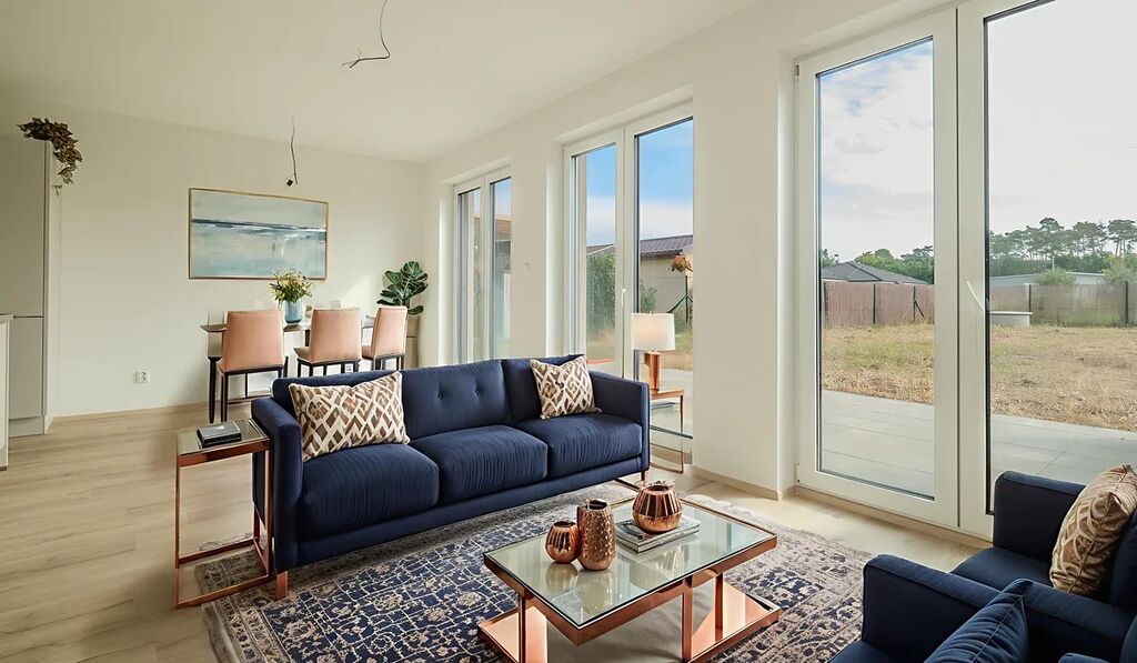 O komfortní bydlení se postará podlahové vytápění v celém domě napojené na tepelné čerpadlo, předokenní žaluzie i dostatek denního světla.