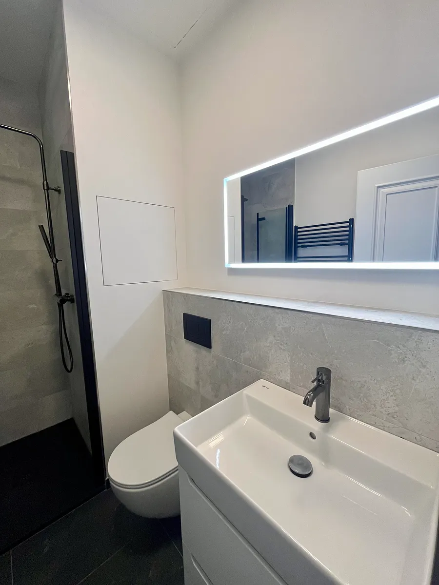 K dlouhodobému podnájmu nabízíme krásný, prosluněný, právě dokončený plně vybavený byt o dispozici 2+kk v nové rezidenci na Žižkove, Praha 3. Byt o celkové výměře 44 m2 se nachází ve 2. podlaží novostavby s výtahem. Ve standardu vybaveni bytu jsou dřevěná okna, kvalitní dřevěné podlahy. Kuchyně disponuje lednicí, indukční varnou deskou, myčkou, elektrickou troubou a digestoří. V koupelně je sprchový kout. Bytu patři sklepní koje 3 m2. V přízemi domu se nachází společná prádelna. V okolí domu najdeme restaurace, supermarket, základní a mateřskou školu, lékárnu, park Vítkov. Několik minut chůze od domu je vzdálená tramvajová zastávka s výborným spojením do centra Prahy (10 min). Majitel preferuje zájemce bez domácích mazlíčků. K nastěhování od 1.9.2025.Poplatky 3700,-Kč.
