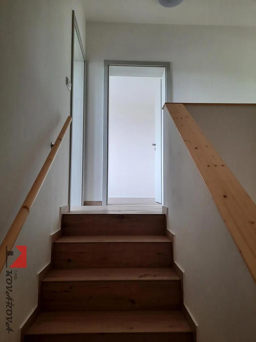 Řadový prostřední patrový nízkoenergetický cihlový dům 5+kk,(novostavba), užitné plochy 180m2, se 2 terasami, garáží a zahradou 277m2, v klidné části obce Mělník, Perunov. Dům je po kolaudaci, postaven z vysoce kvalitního materiálu. V přízemí garáž, obývací část s kuchyní, kuchyňská linka s vestavěnými spotřebiči (myčka, indukční deska, el. horkovzdušná trouba, digestoř)), samostatně stojící lednička, koupelna společně s WC a sprchovým koutem, technické zázemí s, plynovým kotlem a boilerem, v patře další 4 místnosti, 2 terasy a koupelna s vanou a WC V každé místnosti rekuperace a podlahové topení. Zdi jsou natolik odhlučněné, že nejsou slyšet sousedé z vedlejších domů. Na podlaze dlažba v kombinaci s plovoucí podlahou, plastová okna se žaluziemi. Dům je připraven na připojení fotovoltaiky. Celkové měsíční poplatky činí cca do 8.000 Kč. Energetická třída B. Veškerá občanská vybavenost v místě, výborná dopravní dostupnost do centra Mělníka i na Prahu. K nastěhování listopad 2025, Pro bližší informace a prohlídky volejte makléřku.