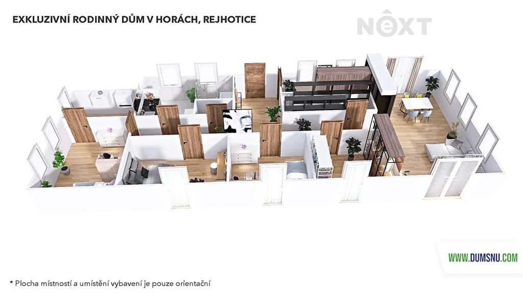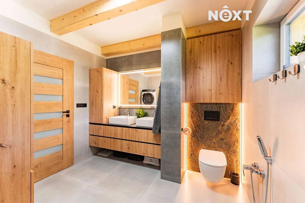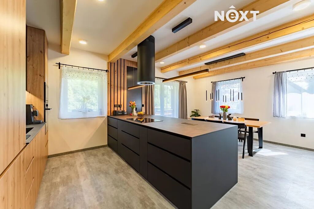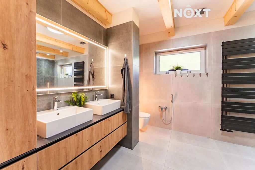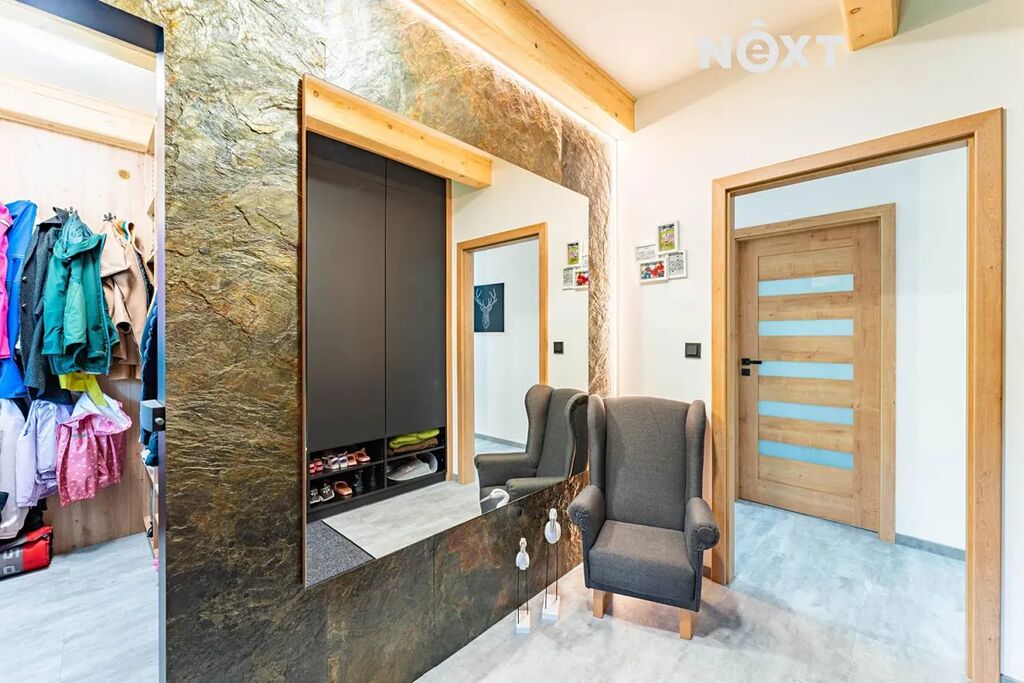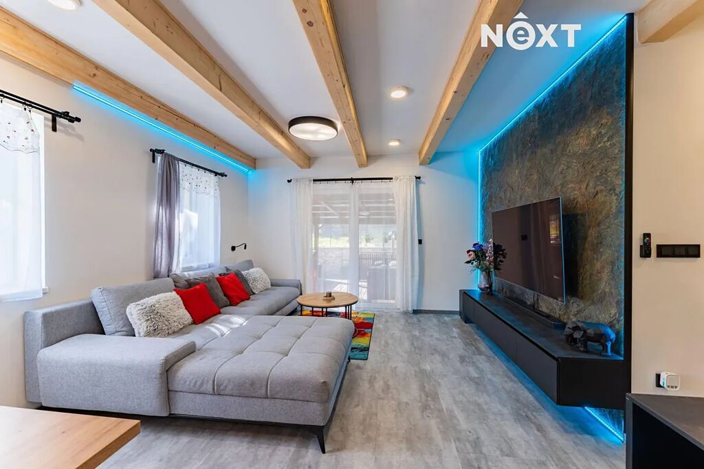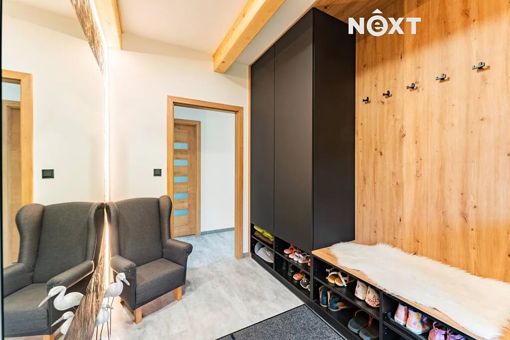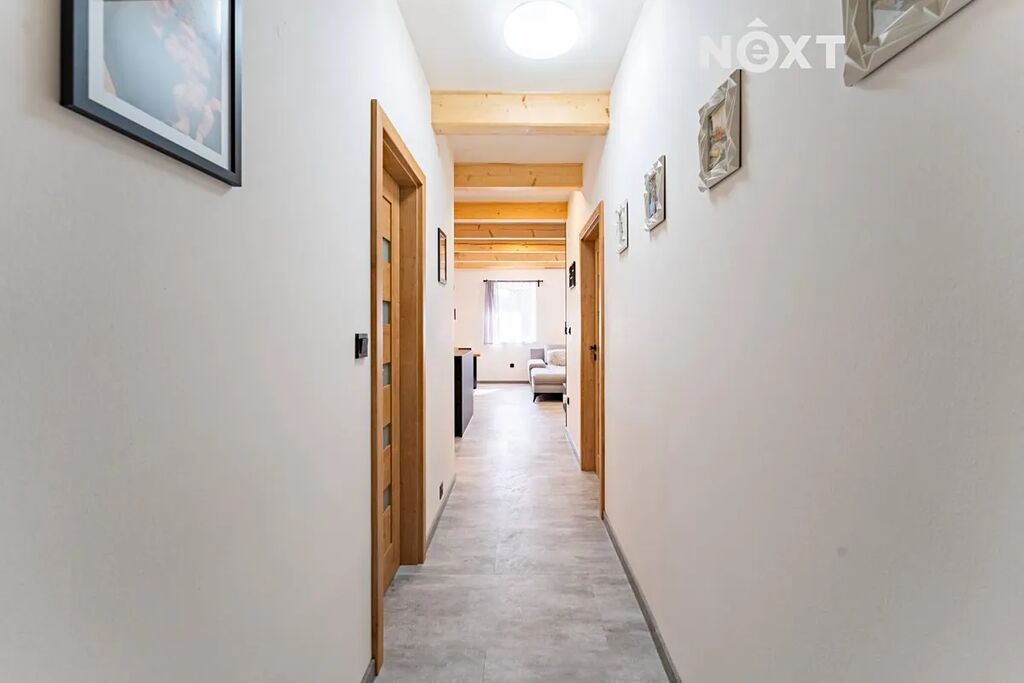Zděný dům, který si dnes můžete pořídit, nabízí dispozici 4+kk s velkou šatnou, která může fungovat jako další plnohodnotná místnost, technickou místností, předsíní s botníkem za vtipně řešenou falešnou zdí a spoustou vychytávek. Kompletní rekonstrukce z dílny profi interiérového studia do současné podoby byla dokončena teprve před několika měsíci, můžete si tedy užívat fungl nového voňavého luxusu. Použity byly nejkvalitnější materiály a zařizovací předměty, celý interiér je řešen s důrazem na funkčnost, moderní design, pohodlí a maximální využití prostoru. Zajímavé jsou rovněž detaily, například LED osvětlení místností i jednotlivých prvků, vestavný nábytek, kamenná stěna v obývacím prostoru, falešná zeď v předsíni a mnoho dalšího.