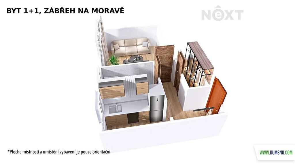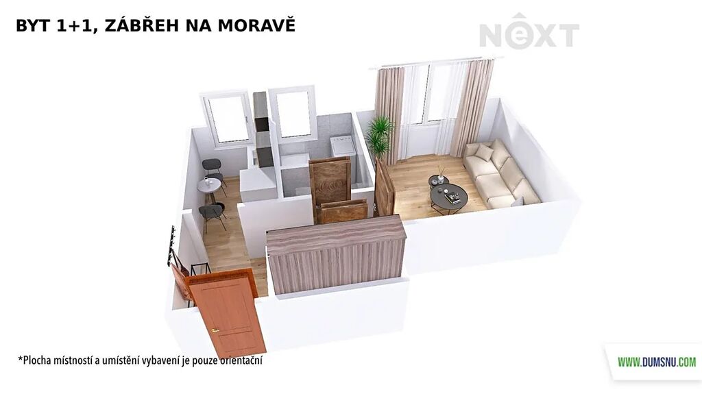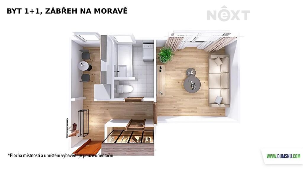 Tento byt o dispozici 1+1 a velikosti 31,6 m² je ideální pro jednotlivce nebo pár. Útulný byt se nachází ve 3. NP panelového domu s výtahem.