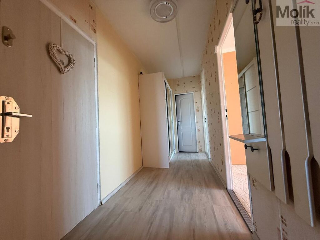 Bytová jednotka prošla menšími úpravami - novější kuchyňská linka, koupelna je oddělena od toalety (sprchový kout), v kuchyni, v obývacím pokoji a v chodbě je položena plovoucí podlaha.