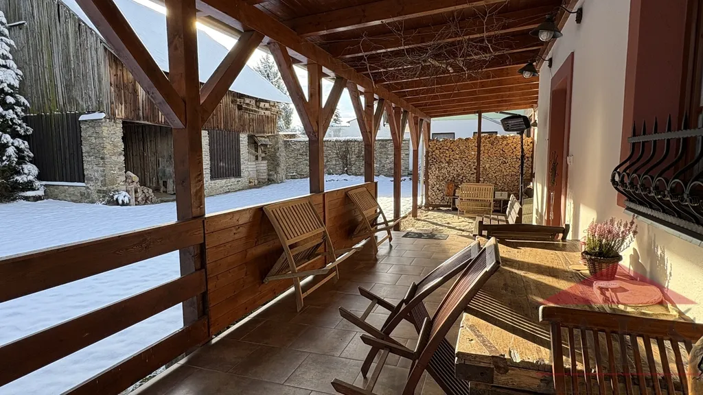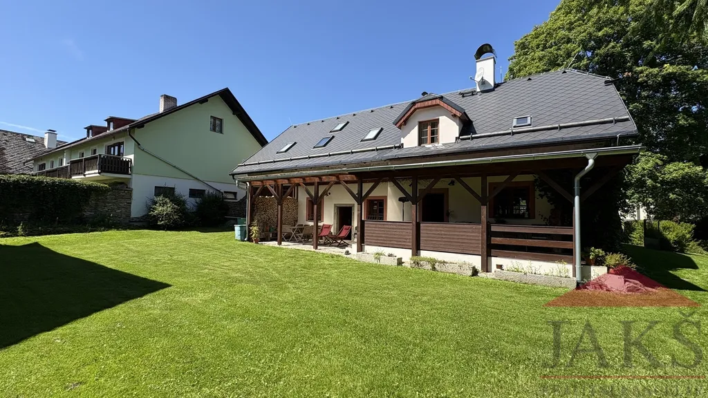 Exkluzivně Vám nabízíme na prodej perfektně udržovanou, kompletně a stylově vybavenou a hlavně komplexně a kvalitně zrekonstruovanou šumavskou chalupu (5+kk; 3 koupelny; podl. pl.: 242 m2; lze užívat jako 2 samostatné apartmány) se zastřešenou verandou/terasou 36 m2 s posezením, navazující velkou průjezdnou garáží 32 m2, samostatně stojící stodolou se zpracovanou studií na dům, krásnou schovanou zahradou s uzavřeným zatravněným dvorem se zaručeným absolutním soukromím a klidem, stojící na návsi v klidné osadě Červená (končí zde cesta, téměř nulový provoz) u Kašperských Hor 4 km, ležící v CHKO Šumava, přímo na hranici NP Šumava, obklopena hlubokými lesy. Nutno vidět jedinečnou klidnou polohu a perfektní stav nemovitosti!