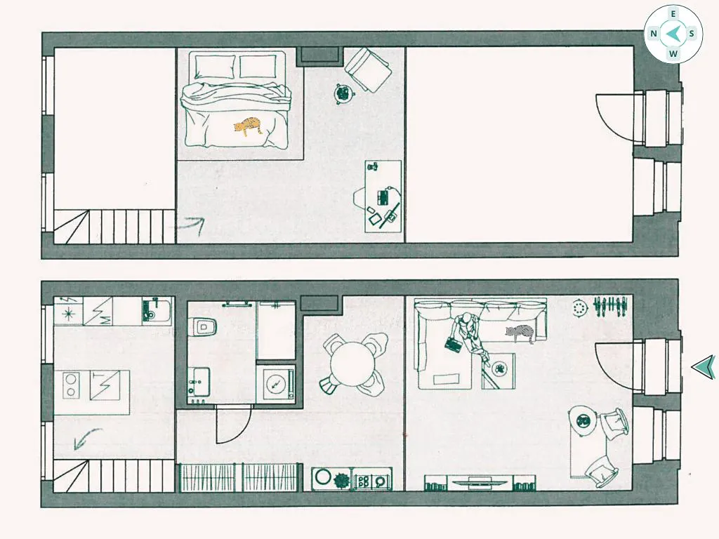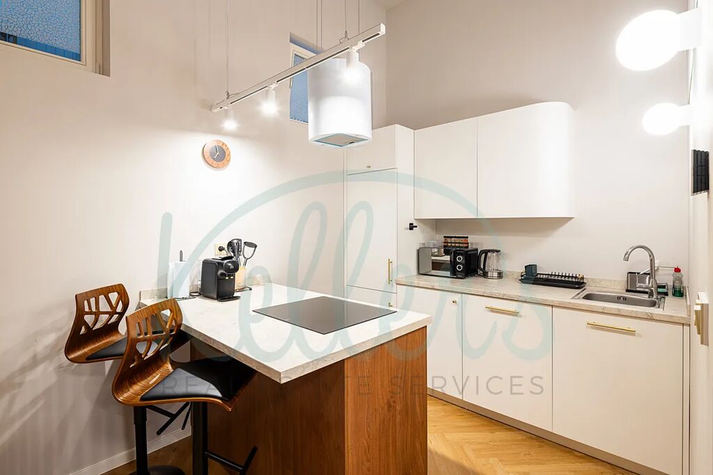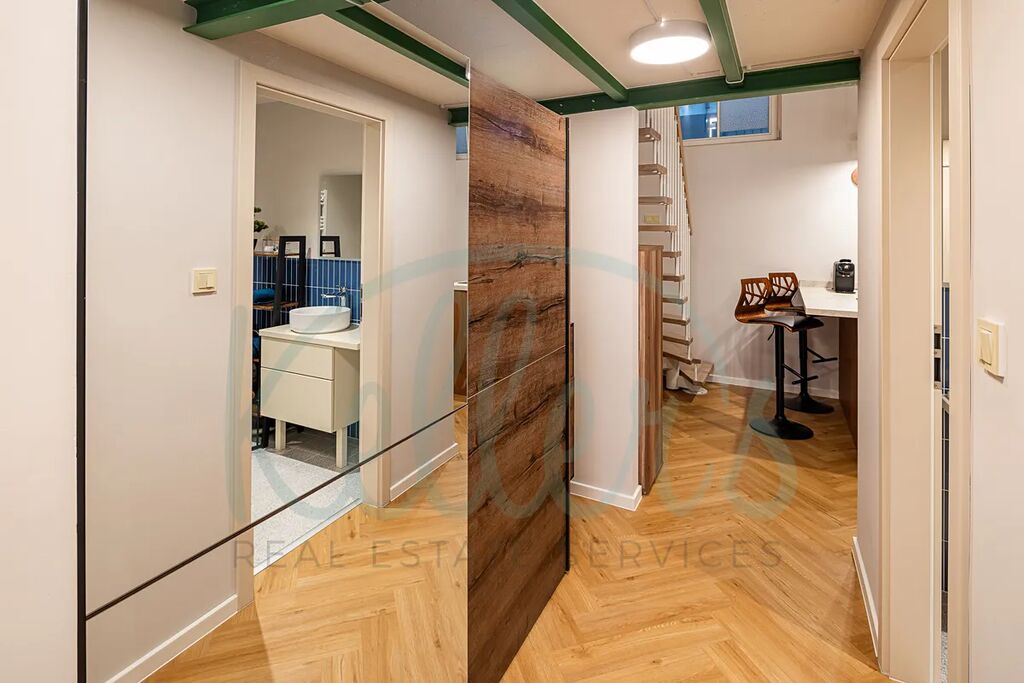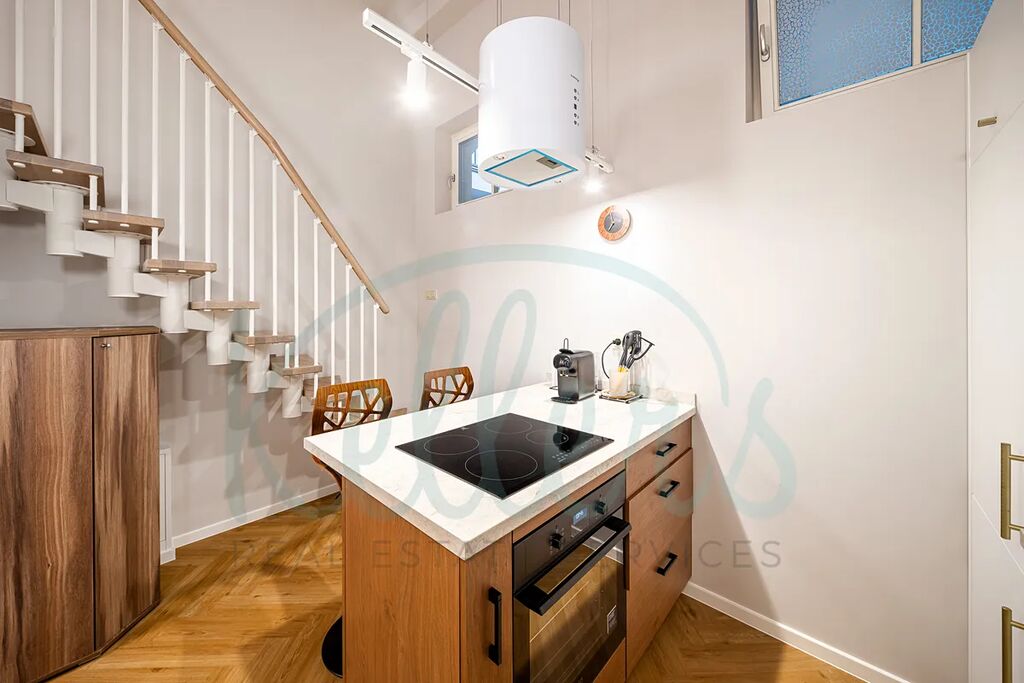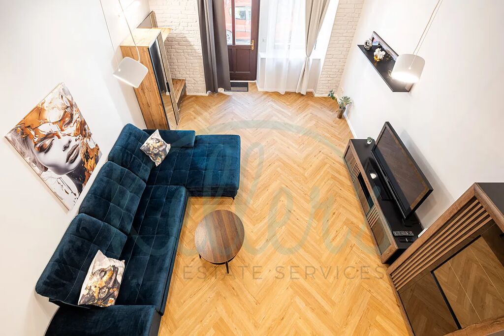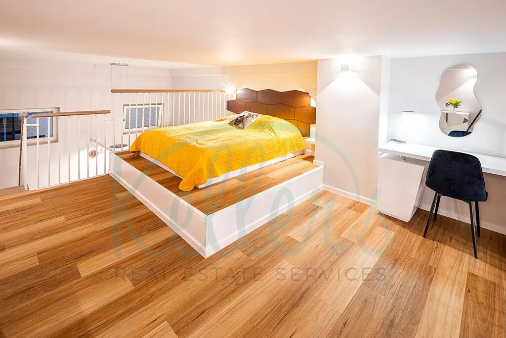 Prostor je v současnosti zařízen a vybaven jako byt – s vysokým stropem, otevřeným patrem využívaným jako ložnice a kompletním vybavením včetně nábytku, spotřebičů a doplňků. Díky tomu je připraven k okamžitému užívání bez dalších investic.