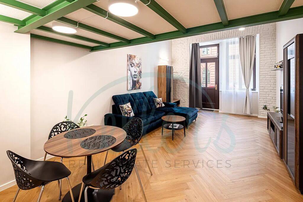Exkluzivně nabízíme k prodeji loftový ateliér o ploše 66,1 m², umístěný v přízemí kompletně zrekonstruovaného domu v ulici Na Valentince, Praha 5 – Smíchov.