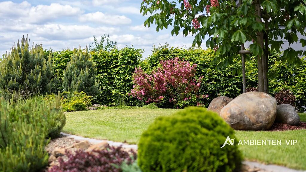 Zahrada má přípravu na bazén (je zde dovedena elektřina a voda) a disponuje také nádrží na dešťovou vodu s čerpadlem.