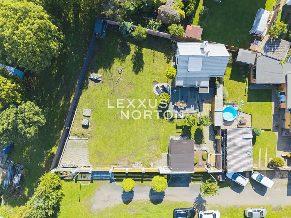 Na pozemku o rozloze 850 m² se nachází menší dvoupodlažní dům po rekonstrukci určený k trvalému bydlení a garáž s vjezdem z ulice. Současná dispozice 3+1 nabízí v přízemí kuchyň, koupelnu se sprchovým koutem, ložnici a obývací pokoj s krbem. V podkroví se nachází ložnice s výhledem do zahrady, šatna a technická místnost. Terasa se sezením příjemně propojuje dům se zahradou. Parkování je možné jak v garáži, tak přímo na pozemku.