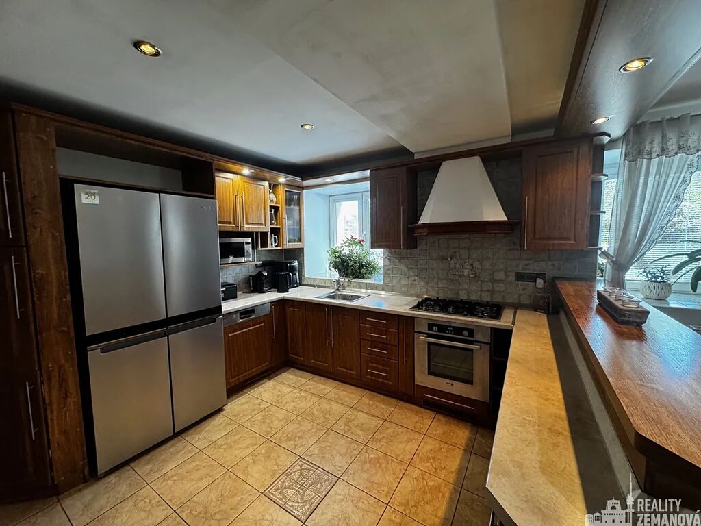 Součástí prodeje je kamerový systém se záznamovým zařízením, satelitní příjem Skylink, kuchyňská linka včetně spotřebičů a americká lednice.