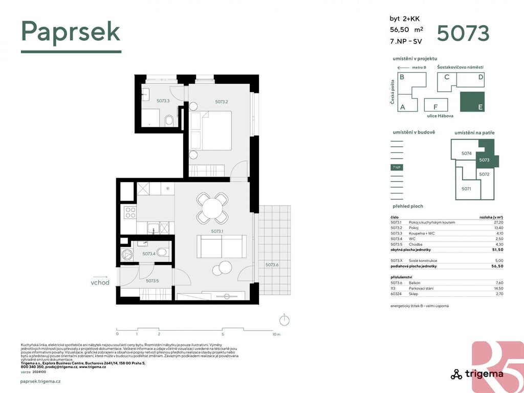 Pronájem nebydlené novostavby 2kk 56m2, P5 Stodůlky, ul Hábova, sklep, garážové stání.