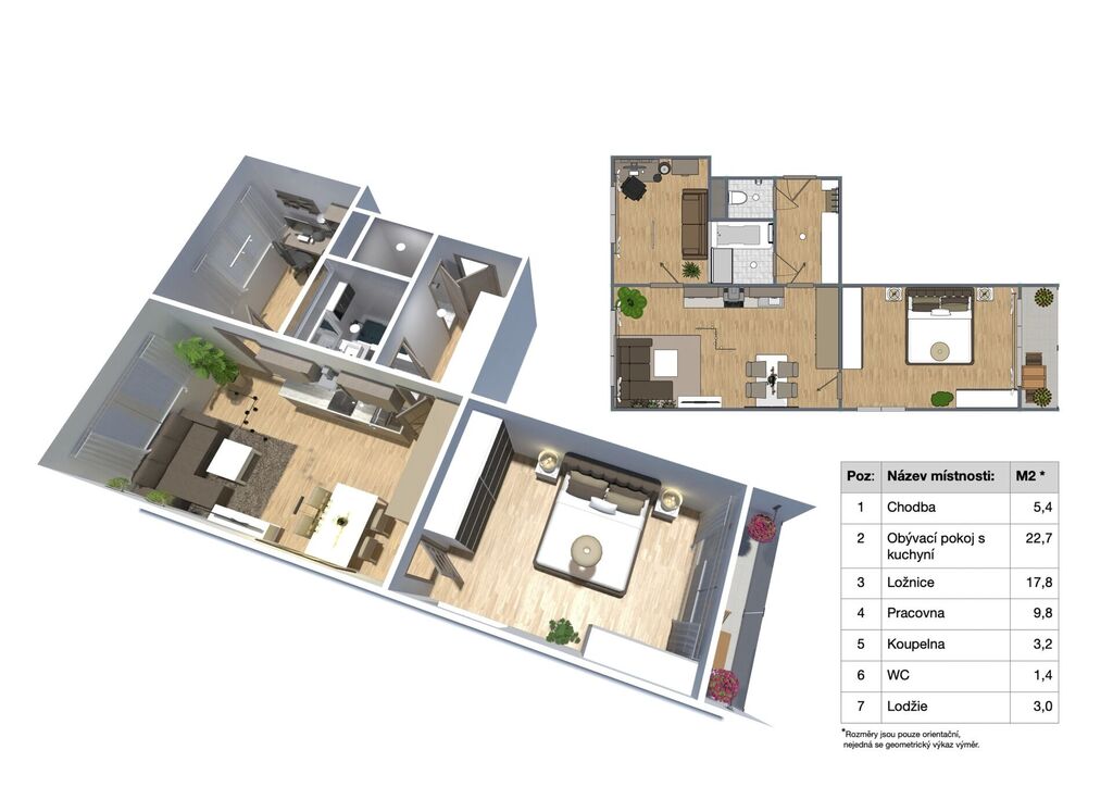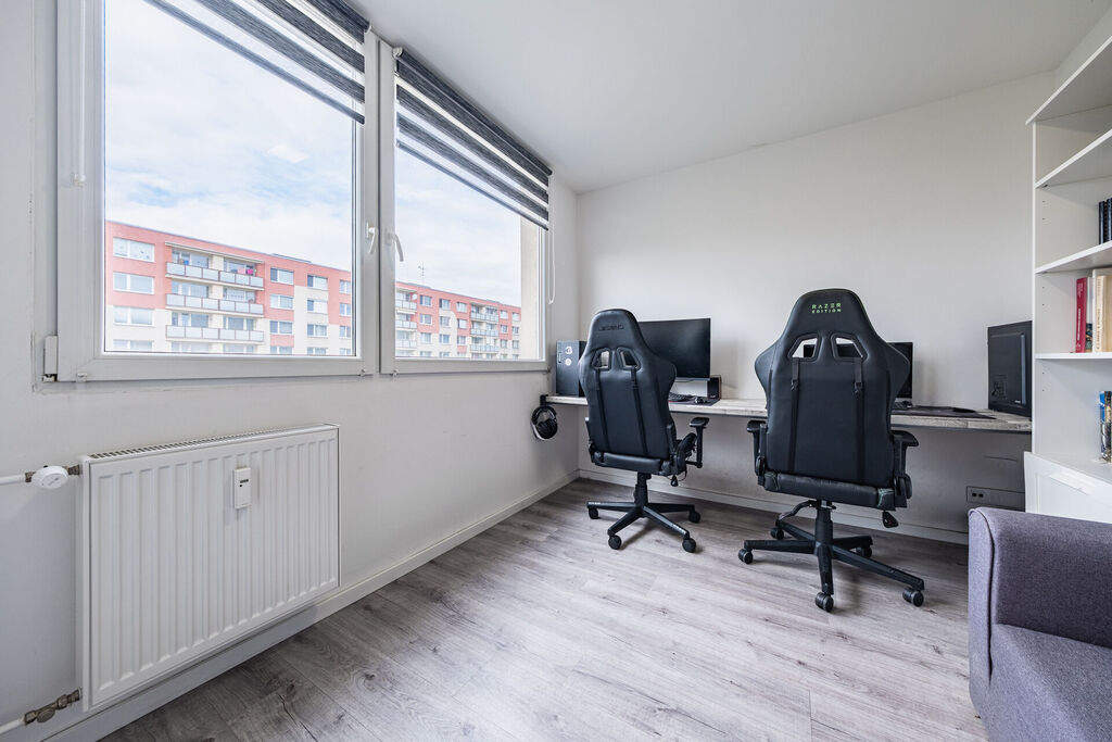 Byt je světlý, vzdušný a díky promyšlené dispozici nabídne dostatek prostoru pro celou rodinu. Obývací pokoj s kuchyní plochou (22,7 m² ) přímo vybízí k setkávání a odpočinku a potěší i toho, kdo rád vaří, ložnice s lodžií ( 17,8m²) poskytuje soukromí a klid, a (nyní pracovna) dětský pokoj ( 9,8m²) se stane ideálním útočištěm pro Vaše ratolesti. Samozřejmostí je sklepní kóje v přízemí domu.
