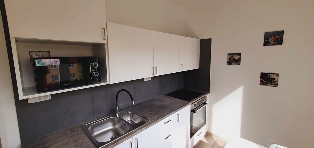 Moderní vybavení – byt se prodává zařízený tak jak je na fotografiích, nový nábytek pro 4 studenty (4 postele, 2 šatní skříně, 2 psací stoly, 2 židle), nové všechny spotřebiče (varná deska, trouba, lednice, mikrovlnka, varná konvice, pračka se sušičkou LG). Není nutná žádná dalšá investice.