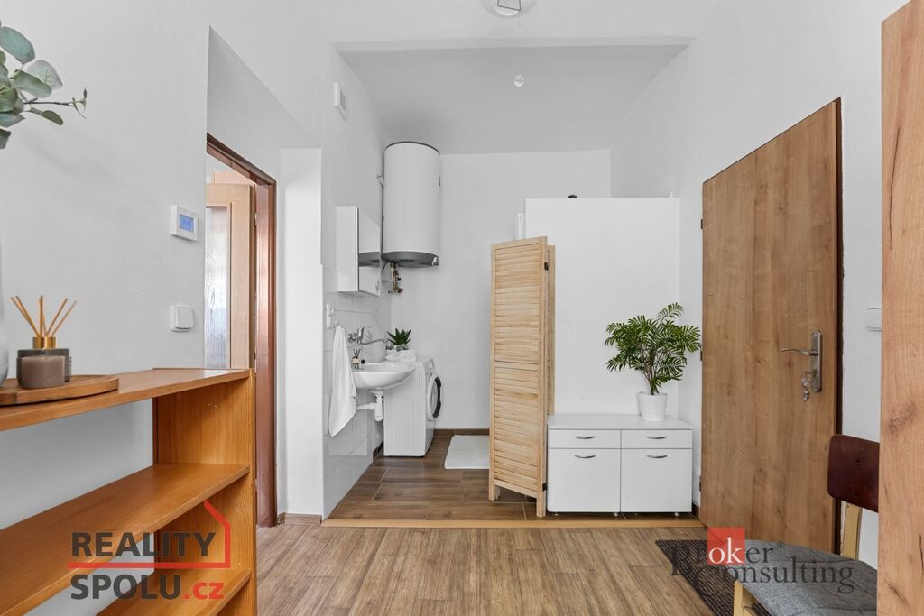 K dispozici je 5 bytů a jedna garáž. Každý byt bude mít podíl na pozemku (zahradě) za domem a zároveň svůj dřevník. Do společné užití pergolu.
