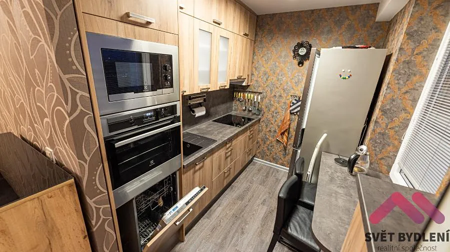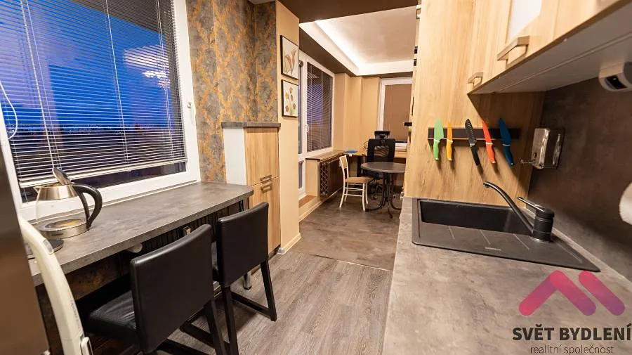 Nabízíme byt který se nachází v 7. patře s výtahem panelového domu po rekonstrukci. Byt je po rekonstrukci a je kompletně vybavený nábytkem viz. foto a dále je k dispozici kuchyňská linka se spotřebiči (myčka, mikrovlnná trouba, horkovzdušná trouba, lednice s mrazákem) dále je v koupelně k dispozici pračka. Byt je velice světlý a náleží k němu velká lodžie s krásným výhledem do okolí.