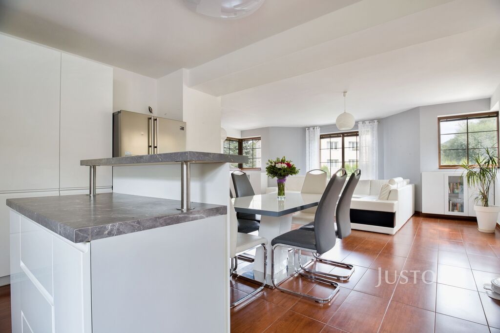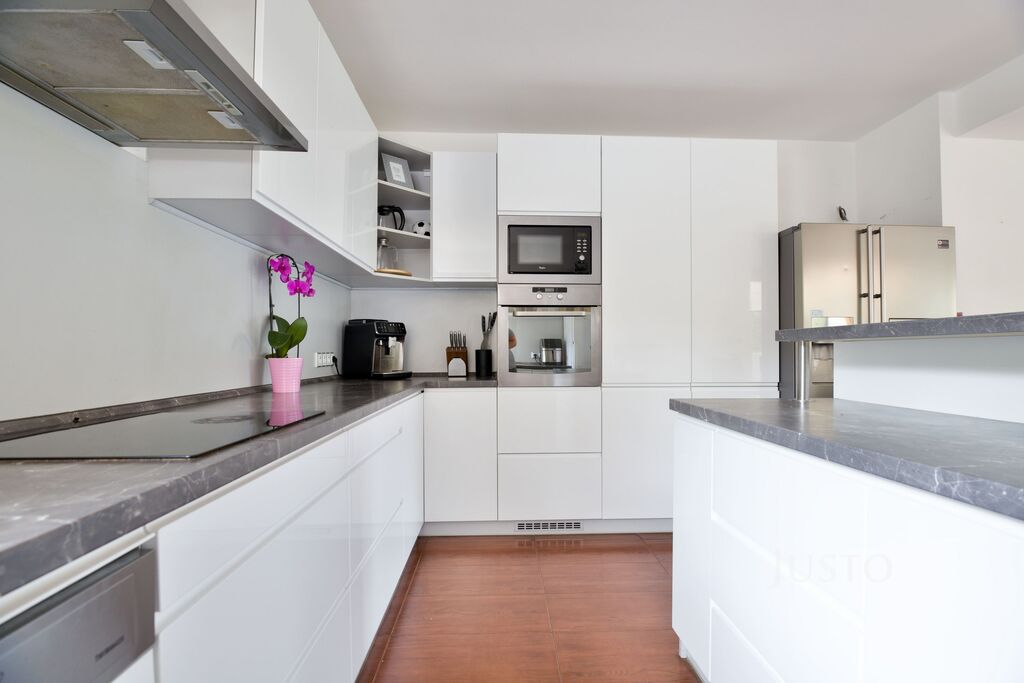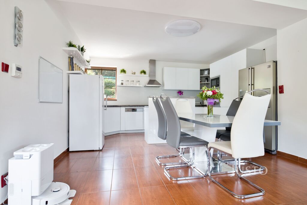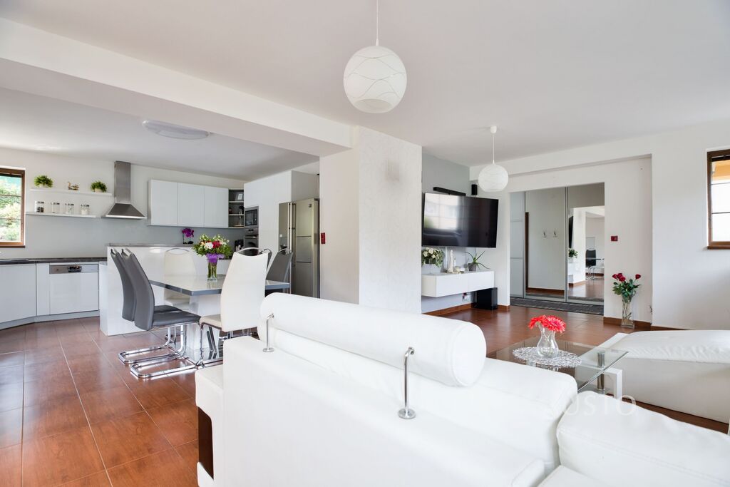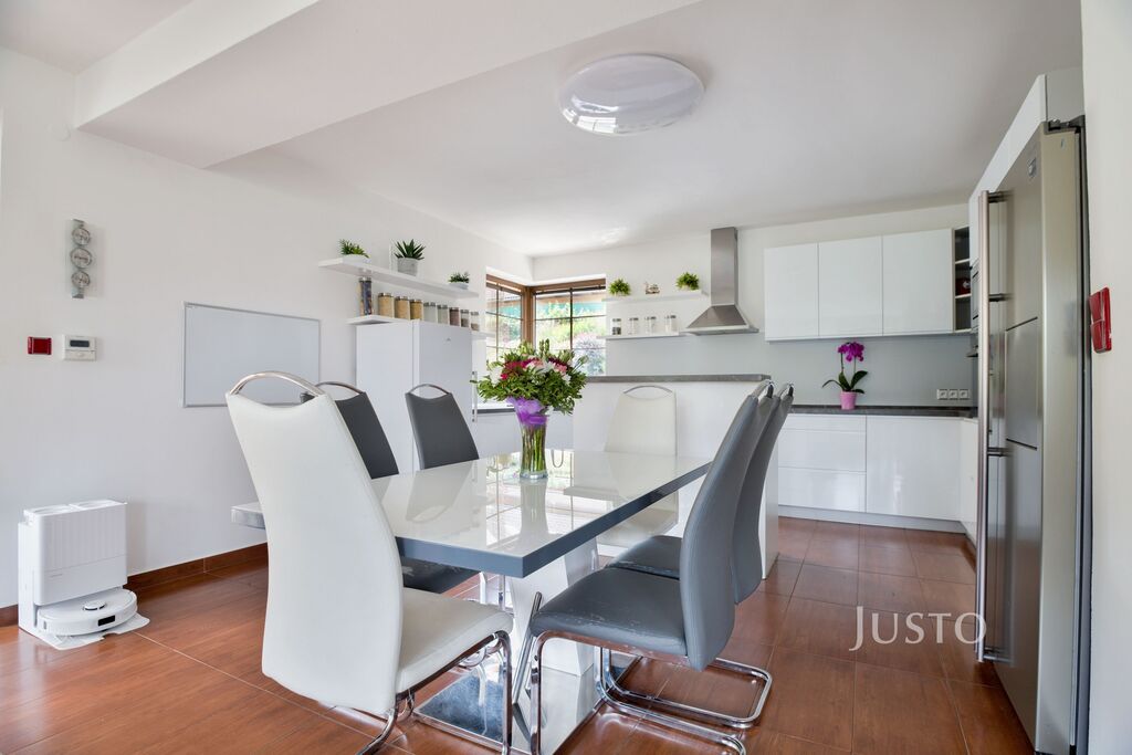 o velkorysý obývací pokoj s jídelnou, navazující na prostornou a plně vybavenou kuchyň