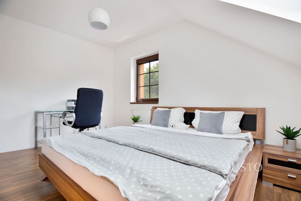 o čtyři samostatné ložnice (každá s dostatkem světla díky střešním i klasickým oknům),