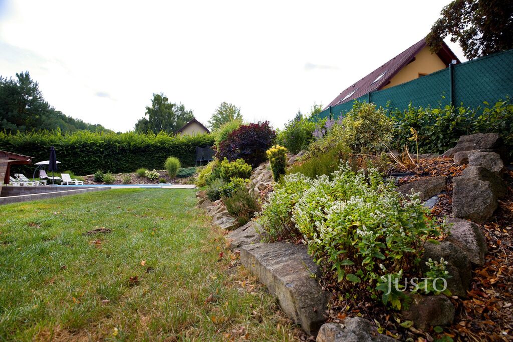 • zahrada s pečlivě udržovanou zelení a okrasnými dřevinami