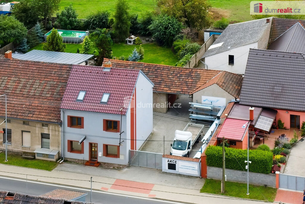 Předmětem nabídky je areál firmy AROS-STAV Neratovice s.r.o., který se nachází v okrajové, severní části obce. Je přístupný z hlavní komunikace procházející obcí, navazující na silnici I.třídy č.9, směr Praha-Mělník. Areál je napojený na veřejný vodovod, rozvod elektřiny a plynu. V areálu se nachází tři stavební objekty. Administrativní budova s kancelářemi a prodejnou a sociálním zázemím ve dvou patrech budovy (I.NP 75,08m². II.NP 68,20m²), a samostatnou bytovou jednotkou (68,20m²) v podkroví. Další dvě budovy (126,58m² a 132,84m²) slouží jako garáže a sklady firmy. Celý areál je oplocený.