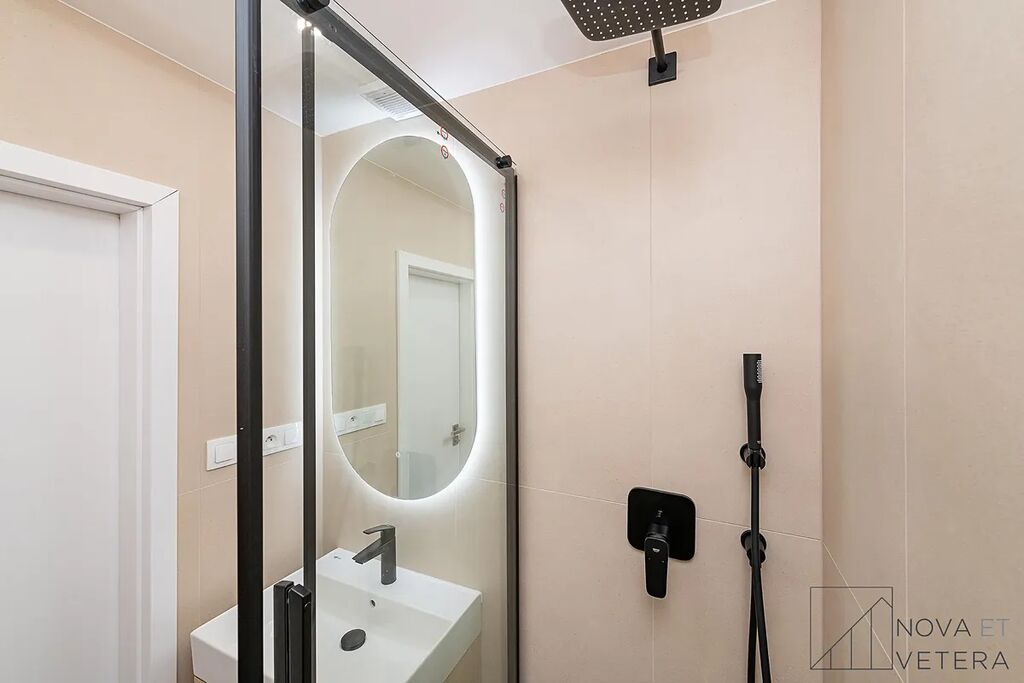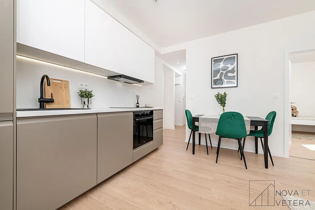 Byt právě prochází kompletní a kvalitní rekonstrukcí, která zahrnuje nové rozvody elektřiny, vody a odpadů, nové podlahy, moderní obklady a dlažbu značky Marazzi, koupelnu se sprchovým koutem a sanitou Grohe a také novou kuchyňskou linku se spotřebiči Gorenje, na kterou je poskytována prodloužená záruka 5 let.