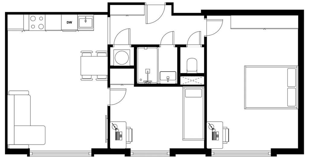 Dispozičně byt nabízí obývací pokoj s kuchyňským koutem, dva samostatné pokoje vhodné jako ložnice a dětský pokoj či pracovna, prostornou vstupní chodbu a moderní koupelnu s toaletou. K bytu náleží sklepní kóje o velikosti 2 m².