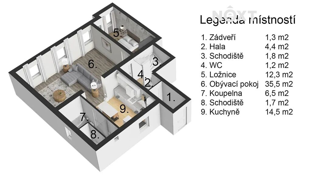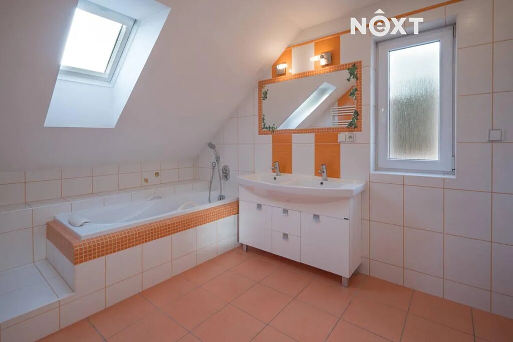 Exkluzivně Vám nabízíme k prodeji rodinný dům o dispozici 41 v klidné oblasti Břeclav - Poštorná. Jedná se o patrový dům se zahradou, předzahrádkou a vinným sklepem. Dům je po kompletní rozsáhlé rekonstrukci (v r. 2006 – 2008), je částečně podsklepený. Dům má dispozice: - přízemí: zádveří (1,3 m2), hala (4,4 m2), ložnice (12,3 m2), obývací pokoj (35,5 m2), kuchyň (14,5 m2), samostatné WC (1,2 m2), koupelna (6,5 m2) s vanou a sprchovým koutem a WC. - patro: schodiště (3,6 m2), hala (8,8 m2), dva pokoje (24,1 m2 a 24,2 m2), koupelna (8,7 m2) s vanou a sprchovým koutem a WC, šatna (3,3 m2), pracovna (8,4 m2). V pokojích jsou klimatizace. Dům je napojen na vodovod, elektřinu, plyn a kanalizaci. K dispozici je i vlastní studna. Vytápění domu zajišťuje plynový kotel, v obou koupelnách je podlahové vytápění. Ohřev vody je pomocí bojleru. K posezení a relaxaci lze využít zahradu či dvůr, jehož součástí je zastřešená pergola. Celková plocha pozemku je cca 247 m2. Parkování je možné přímo před domem. V blízkém okolí je veškerá občanská vybavenost – obchody, škola, školka, lékař, dětská hřiště, parky a mnoho možností pro sportovní a kulturní aktivity. Dle průkazu energetické náročnosti je nemovitost vedena ve třídě D. Pouze u nás vám zajistíme moderní financování až na 30 let, bez ohledu na věk a prokazování příjmů, či nutnosti předkládat daňové přiznání (u podnikatelů). Zeptejte se nás a bydlete chytře! Při osobní prohlídce nejlépe posoudíte, zda je tento dům vhodný právě pro Vaše nové bydlení. Pro více informací nebo sjednání prohlídky kontaktujte realitního makléře. Pro komunikaci uvádějte evidenční číslo zakázky N109691.