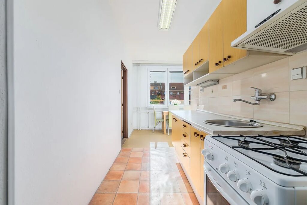 Současný stav bytu o dispozici 3 + 1 vyžaduje buď pouze kosmetické úpravy ( výměna kuchyňské linky, podlahové krytiny ) nebo se můžete pustit do nákladnější rekonstrukce. Koupelna i samostatné WC jsou po rekonstrukci ( zděné jádro ), výběr obkladů s nadčasovým designem je položka, kterou do svých budoucích investic nutně zahrnout nemusíte.