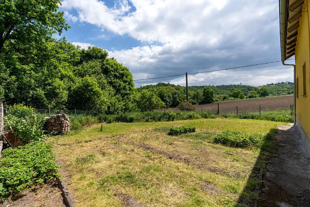 Pozemek za novějším domem je rovinatý, dobře přístupný a bez další zástavby – ideální pro zahradničení, pěstování zeleniny nebo chov domácích zvířat.