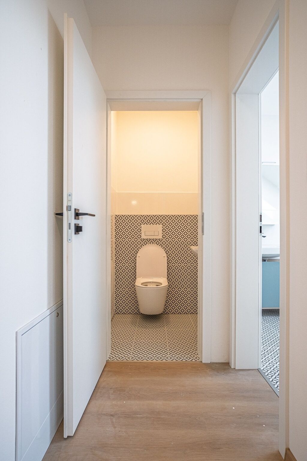 Prostor je vybaven dvěma bezpečnostními dveřmi – jedny vedou do objektu a druhé přímo do bytu – a podlahovým vytápěním, které umožňuje individuální regulaci teploty a zajišťuje úsporný provoz. Výhodou je možnost přizpůsobení interiéru podle potřeb nájemce, možnost využití společné místnosti k úschově kol či kočárků. Jsou zde i datové zásuvky s připraveným internetovým připojením. K dispozici je rovněž domovní telefon, díky němuž snadno otevřete hlavní vchod.
