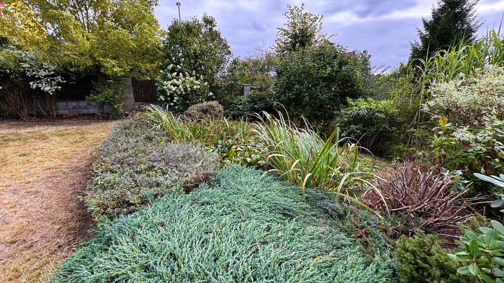 Jednou z hlavních předností tohoto bungalovu je udržovaná zahrada, která je osázena okrasnými keři a stromy, což vytváří příjemné a relaxační prostředí.