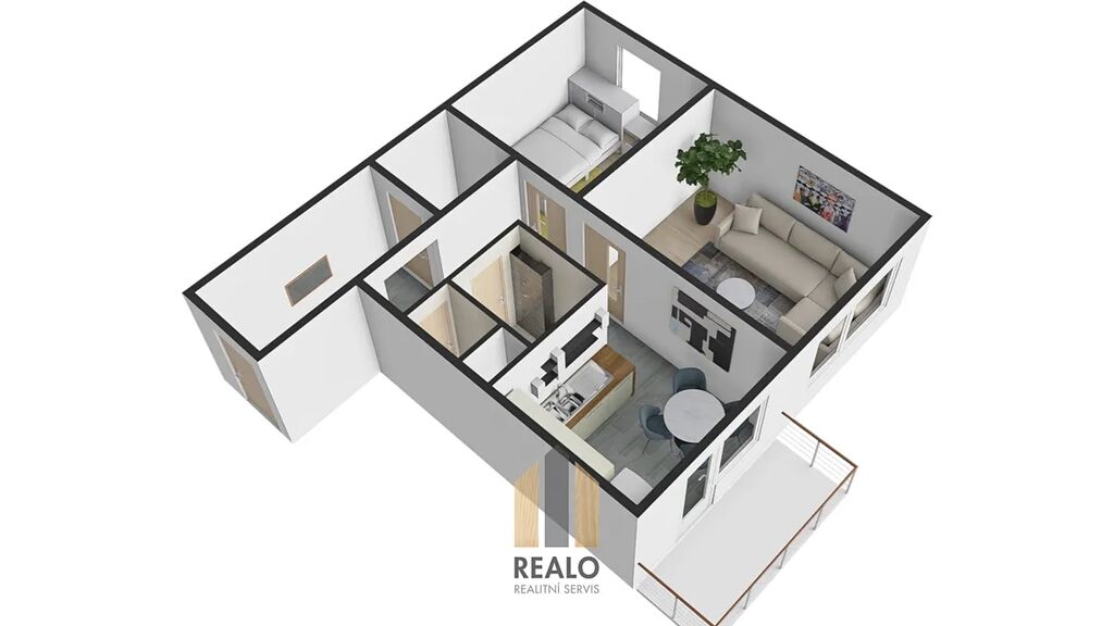 Nabízíme k prodeji byt 2+1 o podlahové ploše 57,6 m², který se nachází ve 4. patře panelového domu s výtahem. Byt prošel rekonstrukcí – má nové zděné jádro s vanou a novou kuchyňskou linku. Z kuchyně je vstup na balkon, další dva pokoje jsou samostatné a neprůchozí.