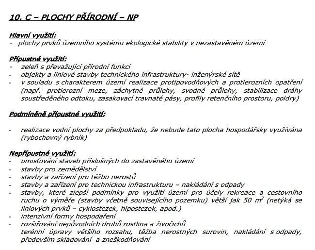 V platném územní plánu obce jsou pozemky uvedeny jako Plochy přírodní - NP.