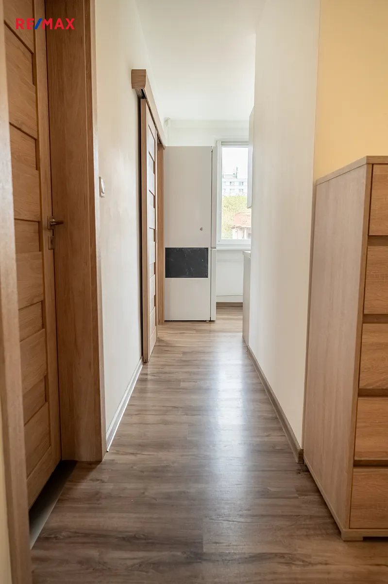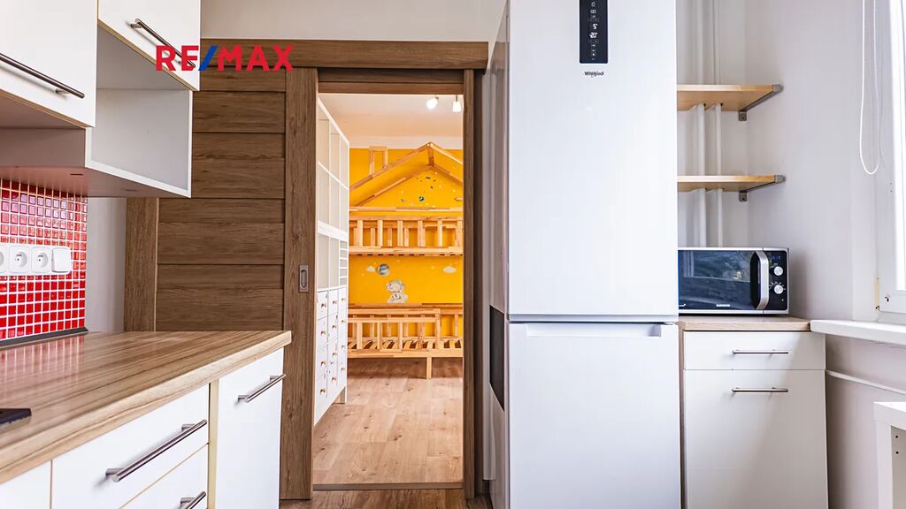 Dispozice bytu zahrnuje novou kuchyňskou linku včetně vestavěných spotřebičů, prostorný obývací pokoj, útulnou ložnici a dětský pokoj – vše kompletně vybaveno nábytkem. Zděné bytové jádro nabízí nově zrekonstruovanou koupelnu se sprchovým koutem, pračkou a sušičkou. Samozřejmostí jsou nové interiérové dveře, kvalitní podlahy a vestavěné skříně.